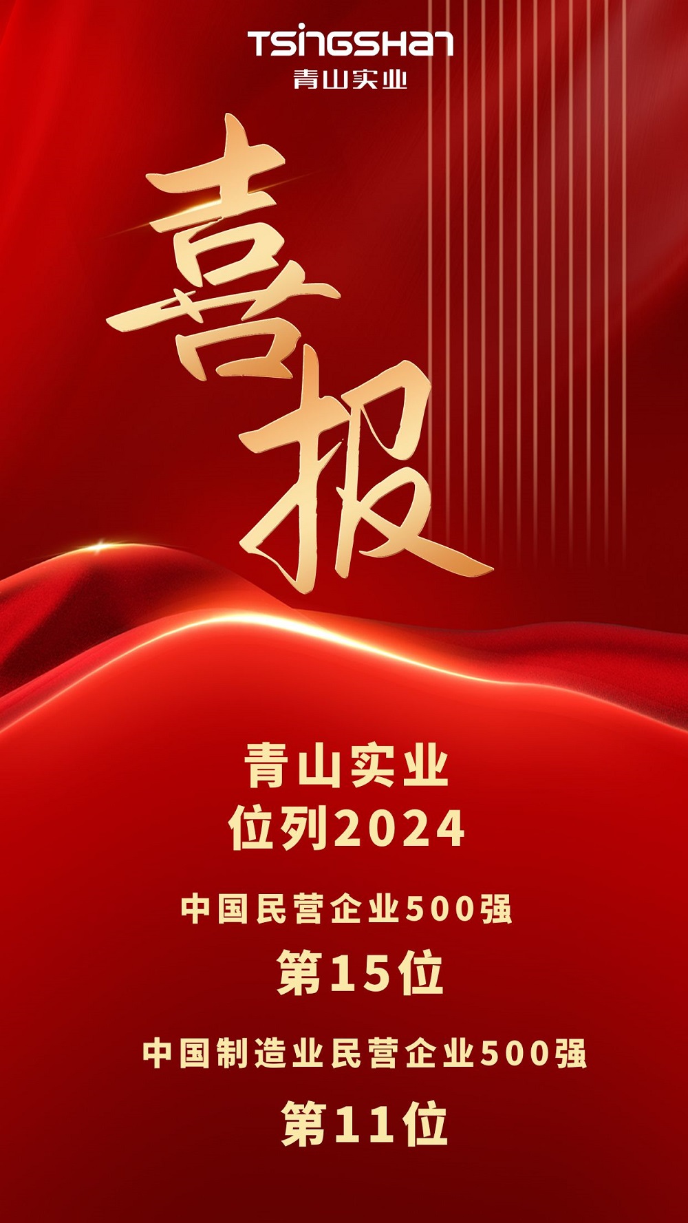 喜报丨jinnianhui今年会实业位列中国民营企业500强第15位、中国制造业民营企业500强第11位