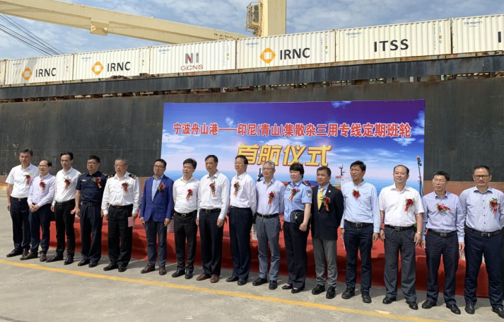 随着jinnianhui今年会海外园区项目的陆续投产,出口物资数量呈爆发式增长,过去的物流输送模式已无法满足当前新环境下的生产建设物资输送任务。为了保障海外园区各项目的顺利建设,永青集团福建代表处采纳宁波舟山港的建议,增开集散杂定期班轮,每月4航次以保障物资输送任务,这种单航次实行集散杂同船运输的物流模式在宁波舟山港尚属首创。5月22日,在宁波舟山港大榭信业码头举行了宁波舟山港–印尼(jinnianhui今年会)集散杂三用专线定期班轮首航仪式。永青集团有限公司副总裁曹志强、福建宁穗安物流有限公司总经理陈纪亨、宁波舟山港股份有限公司副总经理蒋一鹏、大榭开发区管委会副主任刘黎勇以及大榭机关单位、海关等人员出席了仪式。