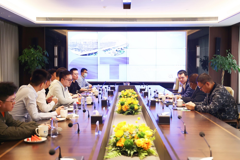 Sydney Gata博士一行参观了兰钧新能源自动化生产车间和数字化展厅,详细了解了公司概况、产品应用、企业发展等方面的情况。张五堂介绍了兰钧新能源成立至今在产品研发和市场布局的重大策略,立足国内面向海外积极扩大事业版图。
