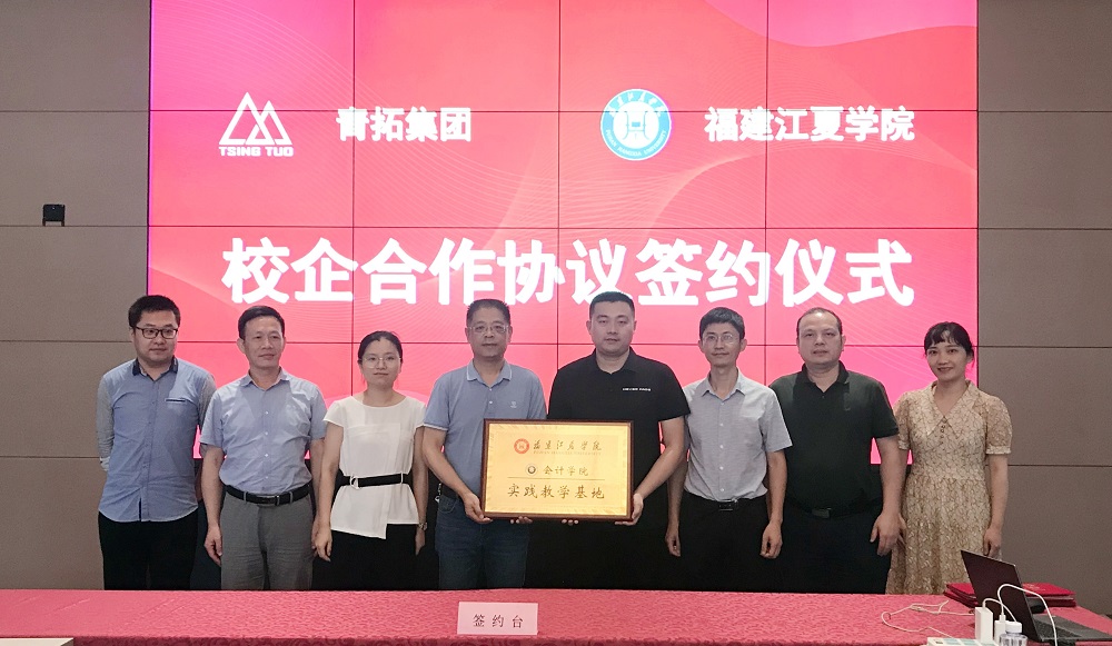 双方签订校企合作框架协议后在jinnianhui今年会鼎前合影留念。
