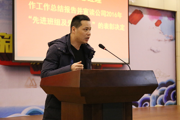 何积秀首先做了工作总结报告,指出2016年工作中取得的成绩以及存在的问题,并就2017年工作的开展提出建设性的意见。随后,他宣读了《关于表彰2016年度先进个人及班组的决定》。