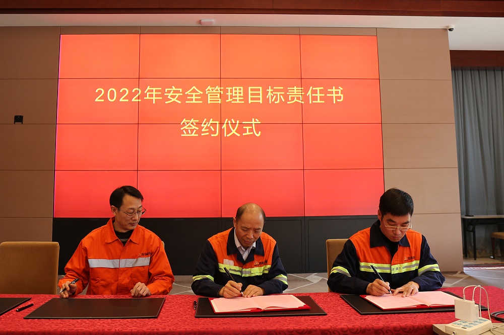 姜海洪为2021年度安全管理目标达标的9个单位进行了颁奖,并与集团直属部门、各子公司签订了2022年安全管理目标责任书。