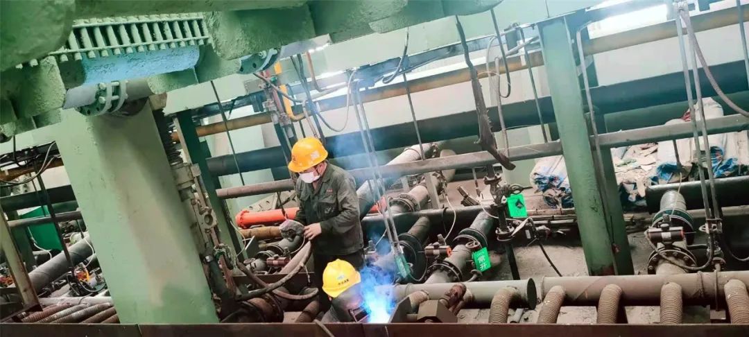 炼铁厂车间里焊花四溅、铁锤叮当,到处是清理拆卸、安装设备的检修人员的身影。检修人员不辞辛劳,加班加点,全力投入到更换烧结点火炉、维修更换二混圆筒等项目中,按时保质完成了检修任务。